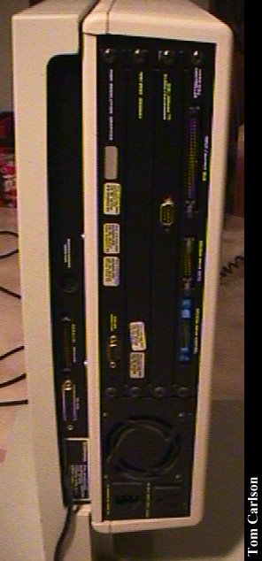 Donor: Jay Glosser Most people are familiar with the Tandy Model 1000. IT was one of many IBM XT clones. So what makes the Model 2000 special? Well, as far as I know, it was the only major PC to come with the Intel 80186 chip. Yes, there was a chip between the 8086/8088 and the 80286. This machine also comes with a very nice sharo color monitor. I don't know whether the vertical stand was standard equipment. Some of the ports on the back come out of the stand, rather than out of the main unit, so maybe the stands were either standard, or a common add-on.